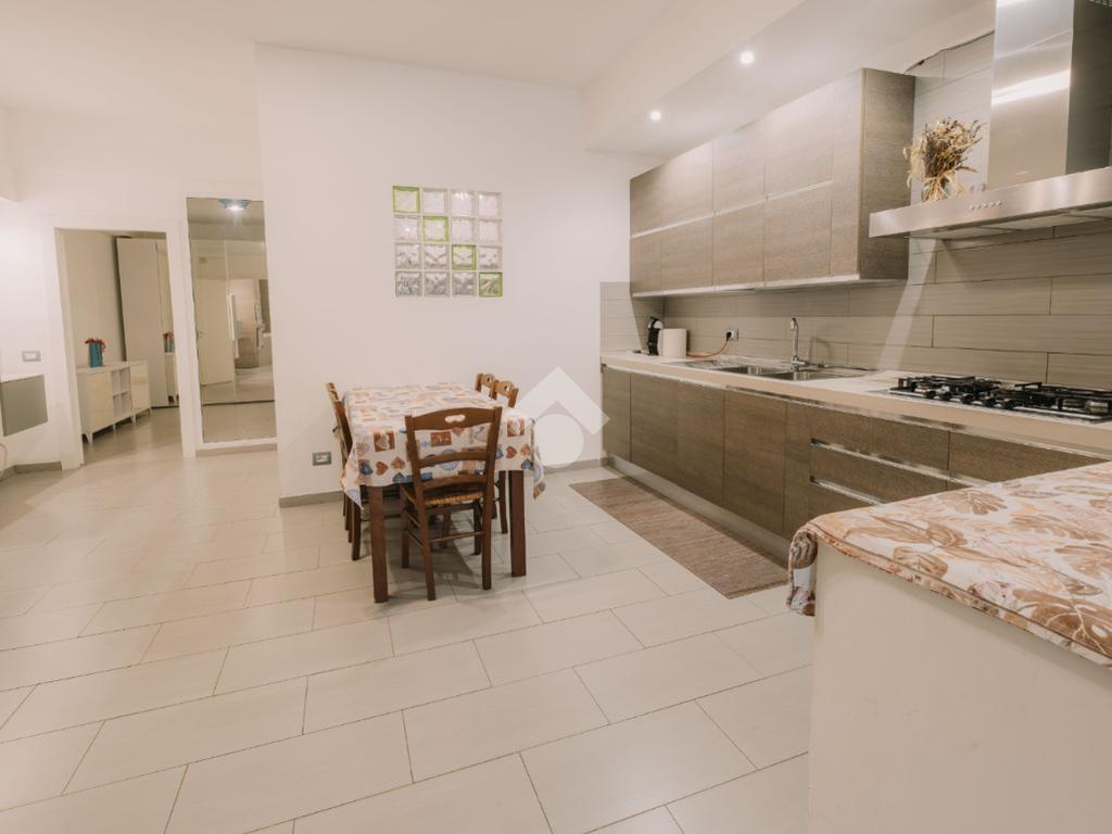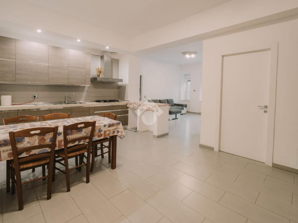 Soggiorno luminoso con cucina open space, perfetto per momenti di convivialità.