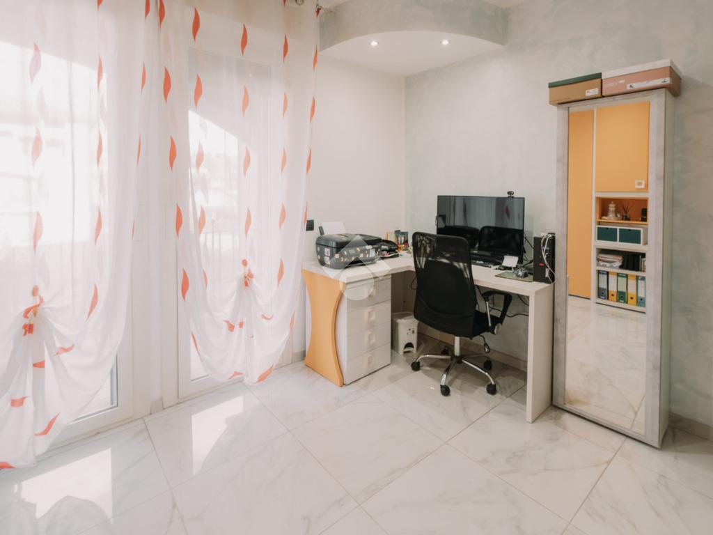 La zona notte è ben separata e risolve una delle esigenze più richieste: due camere vere e funzionali. La camera matrimoniale e la cameretta hanno entrambe accesso diretto ai balconi, un valore aggiunto che regala sfoghi esterni privati, ideali per chi ama luce, aria e continuità tra interno ed esterno. I due balconi, grazie alla doppia esposizione, amplificano la vivibilità della casa e migliorano il comfort in ogni stagione.