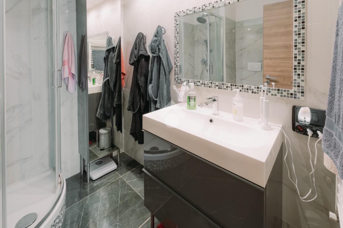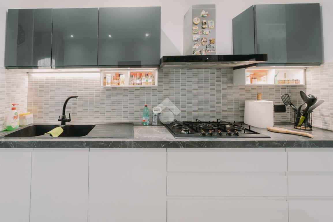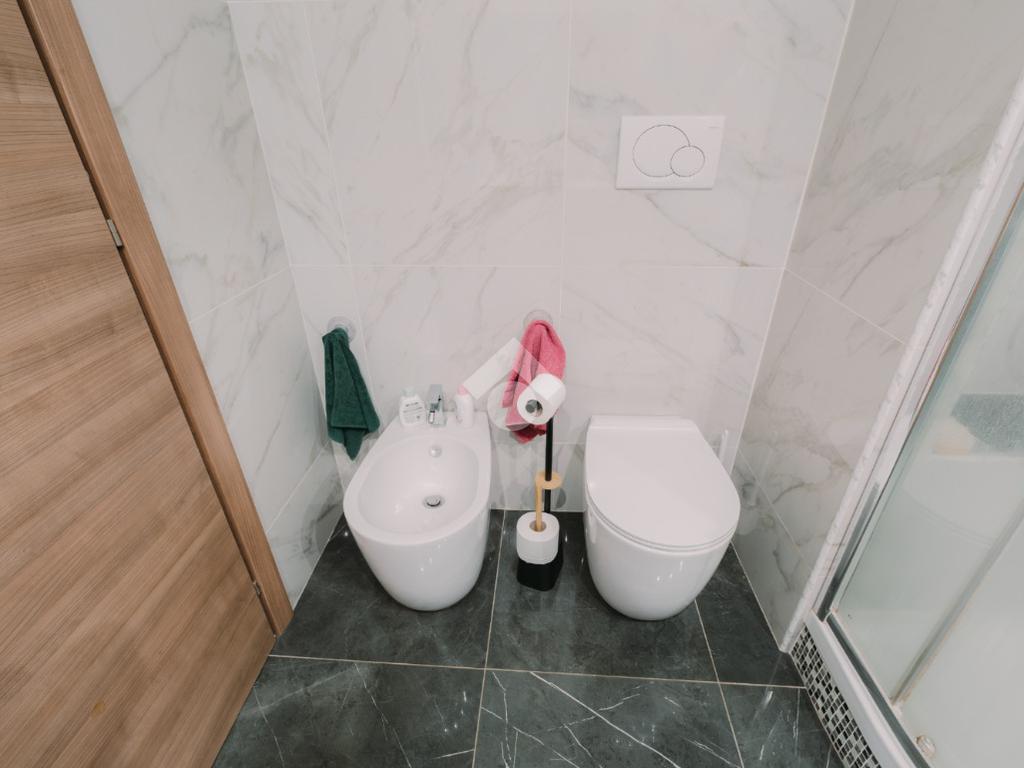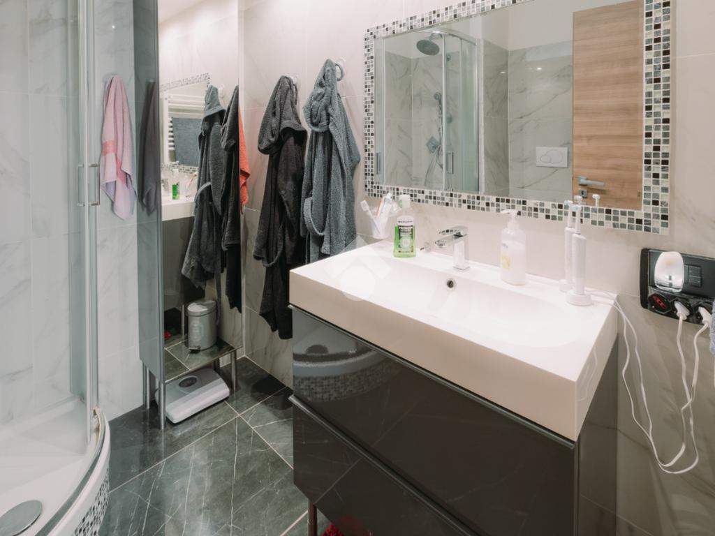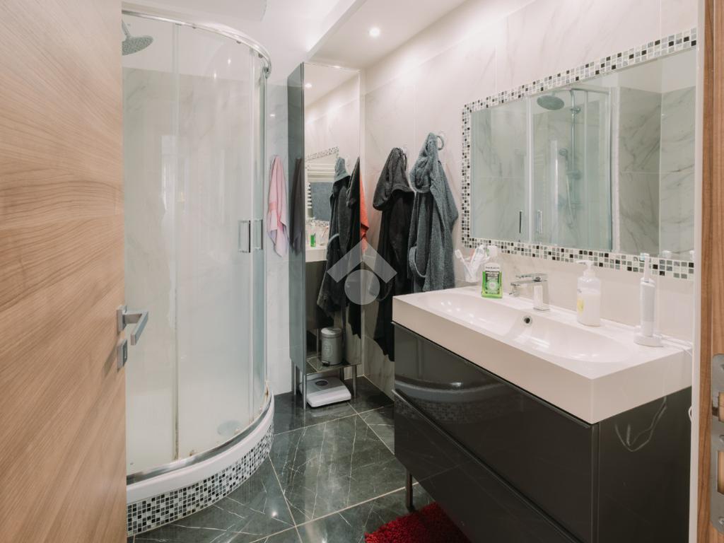 Il bagno con doccia, moderno e ben rifinito, completa l’abitazione con uno stile attuale e pratico, perfetto per le esigenze quotidiane.