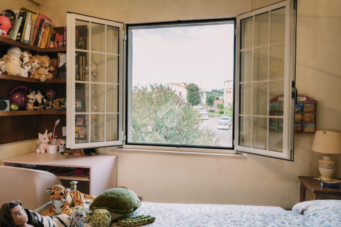 Al piano superiore, la zona notte offre una camera matrimoniale e altre due camere da letto entrambe finestrate, di cui una con accesso diretto a un comodo terrazzo riservato e un secondo bagno finestrato con doccia.