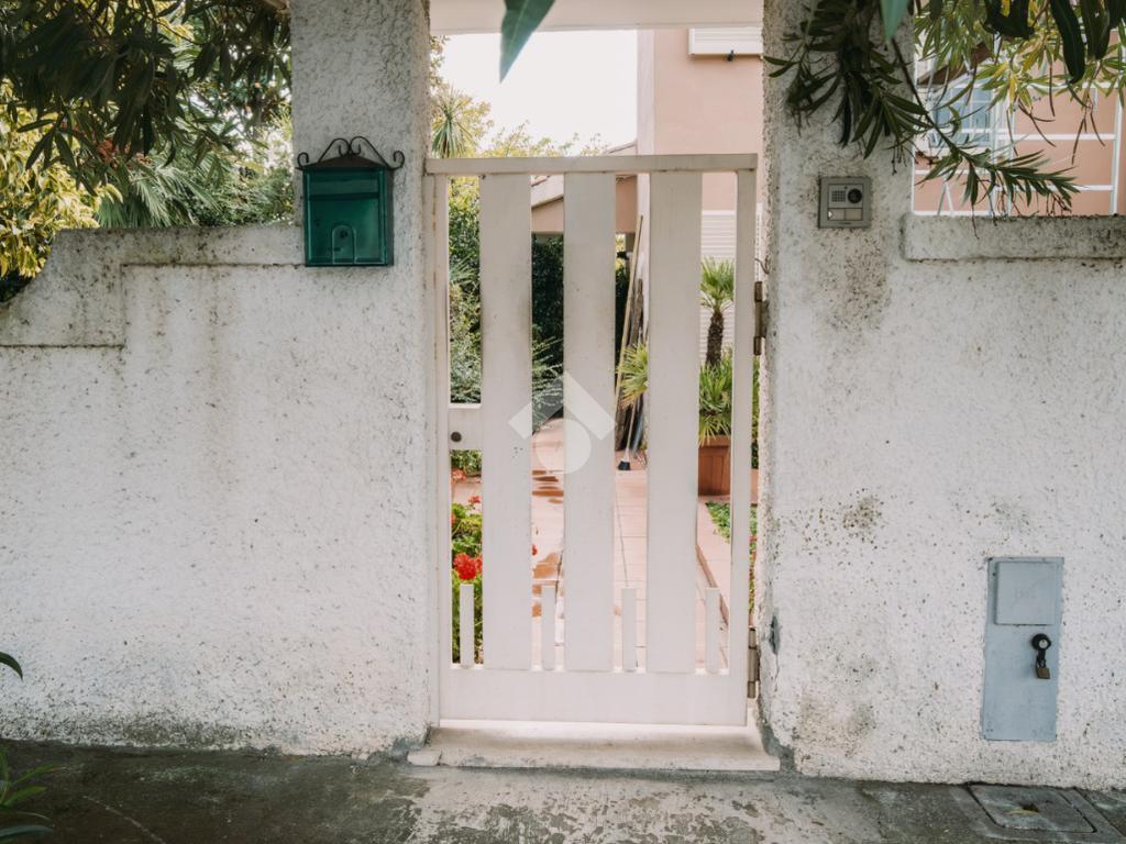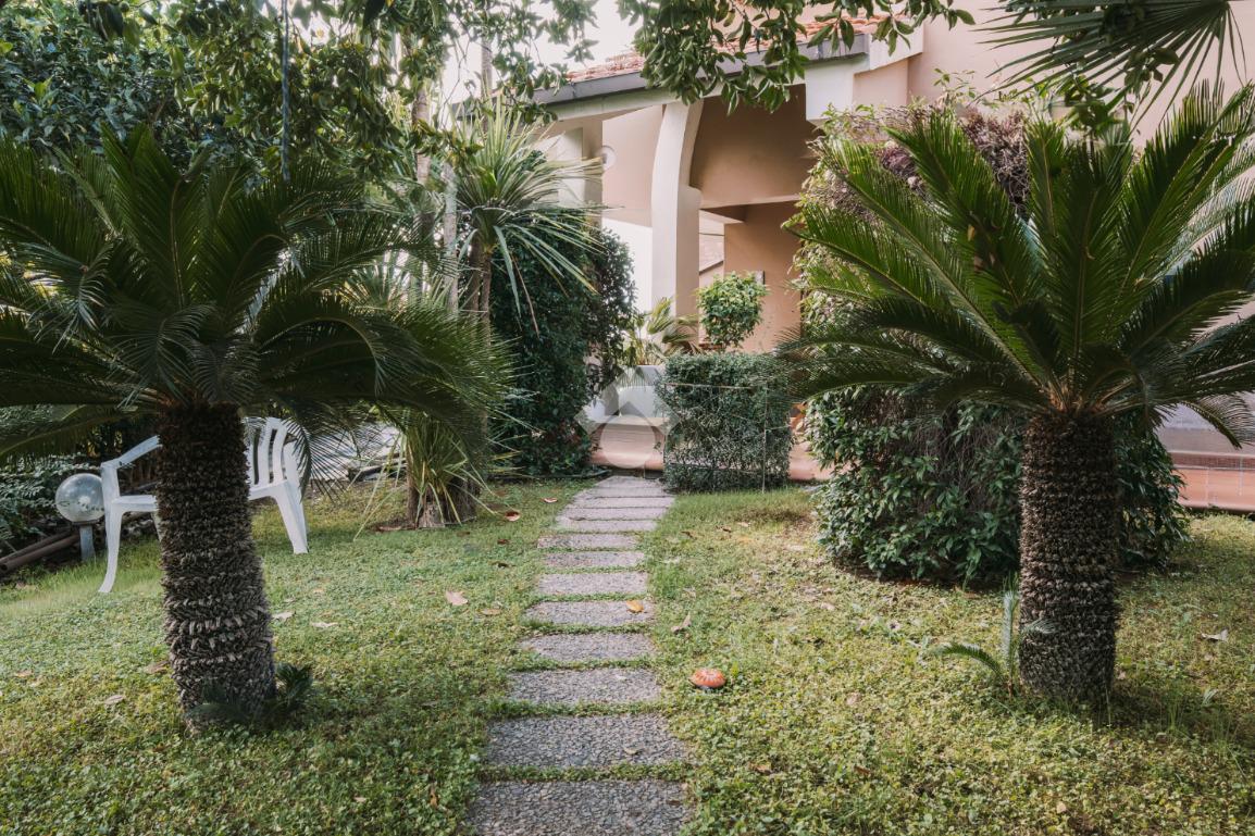 L’abitazione è circondata da un ampio giardino privato, ideale per momenti di relax all’aperto, e da un pratico portico coperto, perfetto per pranzi e cene estive.